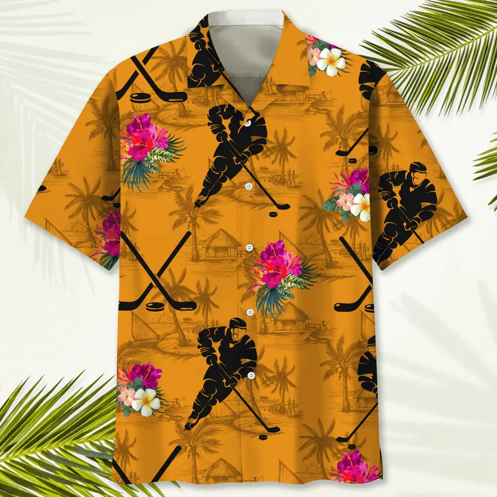 Introducing Hockey Orange Tropical Hawaiian Shirt HWBN2762287 - Beltina.
